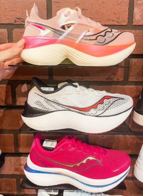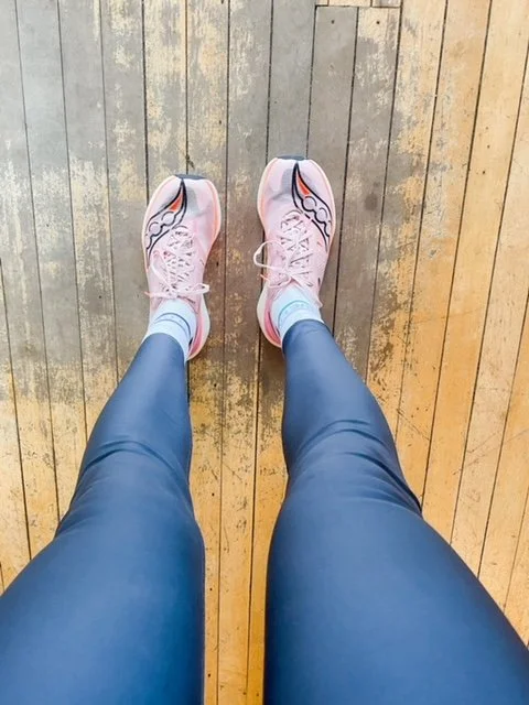 There are a few reasons for this. On’s cushioning system, which is what I look for in a shoe, has been updated. So that’s good. They also got rid of the “Speedboard” underfoot— I am learning that I wasn't the only one who hated running in their shoes because of this. On now uses Helion foam for a softer bounce. Out of all the shoes I had on (with the exception of the sparkly Saucony race shoes that I’ll tell you about shortly), this is definitely the most stylish of the running shoes. I found this shoe to no longer just be a pretty face but actually have some substance, too!