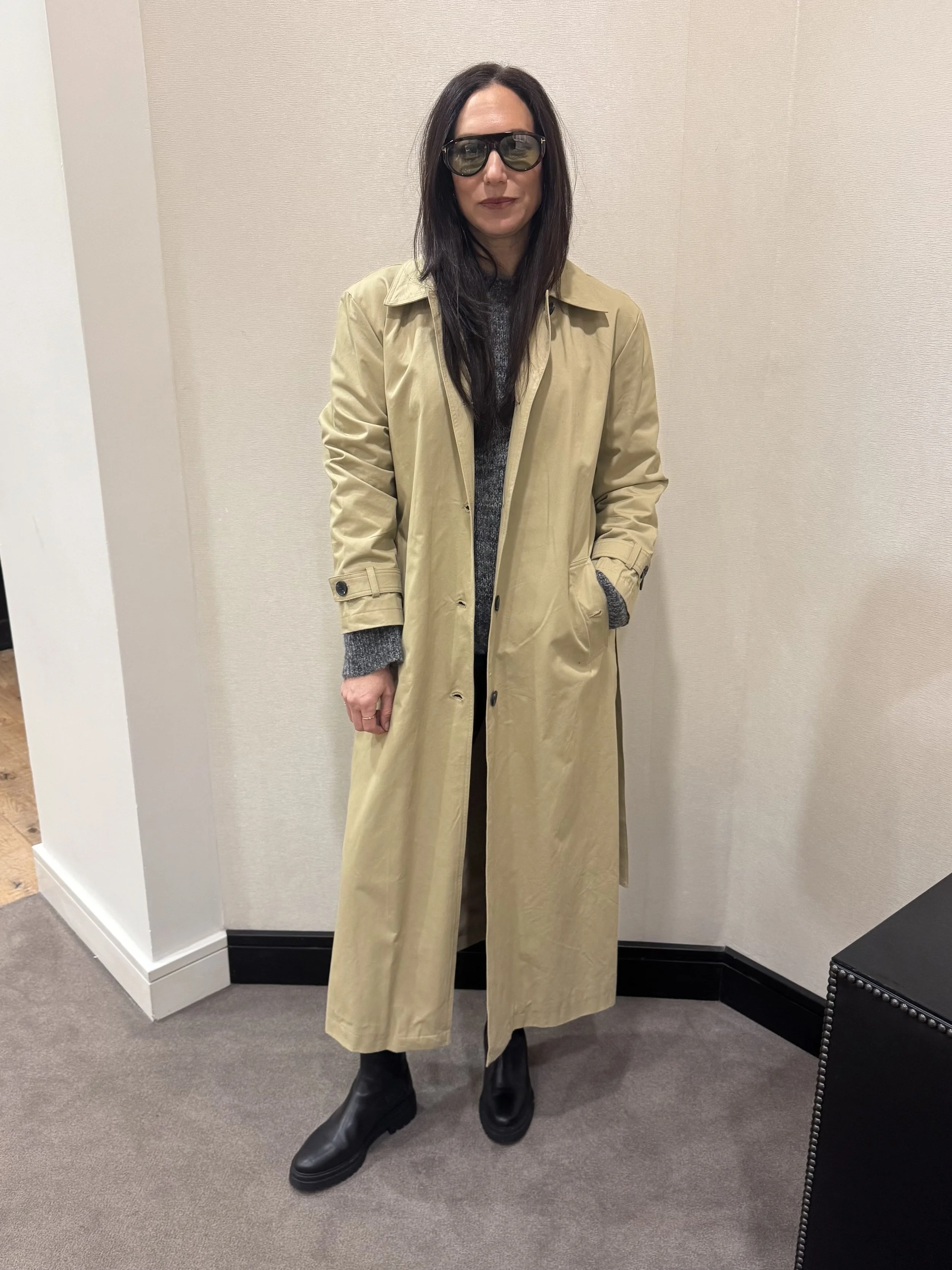I was about to say that this is my favorite look but honestly, they have all been my “favorite” so far. I guess it makes sense that I had so much fun with this project! This look was completely inspired by the beautiful and long trench coat that we happened to stumble upon on the sale rack. There is something so beautiful, cool and absolutely timeless about a trench coat, no matter what you are wearing under it.