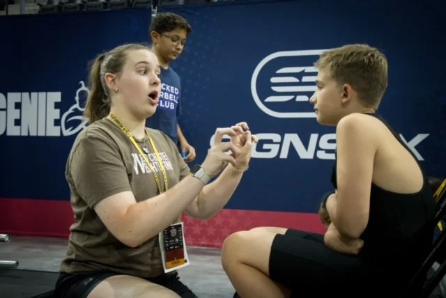 When I was observing Maeva with Jackson, she immediately told me to watch the funny faces Jackson makes when he lifts. He didn’t get mad or embarrassed but agreed with her and laughed. Maeva and Jackson just seemed to get each other and were so in sync. At times they spoke in their secret weightlifting language, which I didn’t follow. It was very inspiring to sit in on this training session for many reasons.