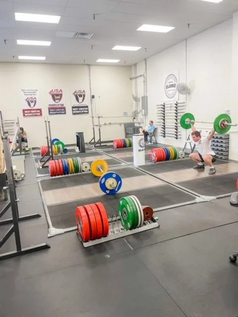For the “where in the world can kids do this” question, I visited West Chester Weightlifting where Jackson learned the sport and currently trains. This is not your typical gym. It’s unlike anything I have observed in my fitness finding. At first glance, it could look like a CrossFit gym, meaning there was equipment that I would expect to see at Crossfit. But with a closer look, this gym was mostly bars and colored plate weights with only a few barbell stations.