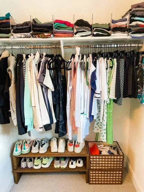 Lucky for me, my talented SIL, Devin, just launched her dream business: A Life Less Cluttered. A Life Less Cluttered provides home organizing for busy families across the Philadelphia area. And while my entire life really needs an organizational overhaul since 2020 happened to my house, we both agreed that doing my closet would be a good place to start.