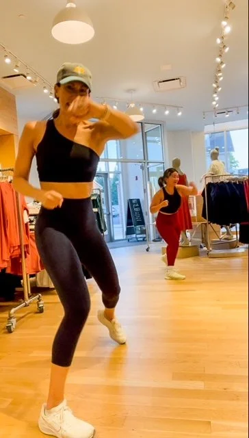 And I am always looking for a new, fun cardio dance workout and I think I found it in 305 Fitness. 305 Fitness is based out of NYC, and Alyza Ngbokoli and Jessi Perna-Elias are two of the instructors who have brought this heart pounding, booty shaking, full body party to Philly. They do pop-ups all over the area and this week Alyza led a class at Athleta in Bryn Mawr. Aside from the fact that she’s an amazing dancer, her energy is captivating. She did a great job breaking down the moves and encouraging me when I was dancing. It’s tough to get out there and just let down your guard so it’s always great to have a cheerleader. Alyza was just that!