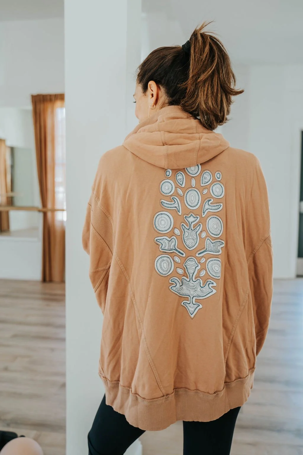 I styled the Alo onesie for the street with a simple v-neck sweatshirt. This sweatshirt from Athleta is just the dreamiest. I love the rich brown color. Knock it off the shoulder for a casual, flirty look. With a bodysuit under there, you are fully covered!