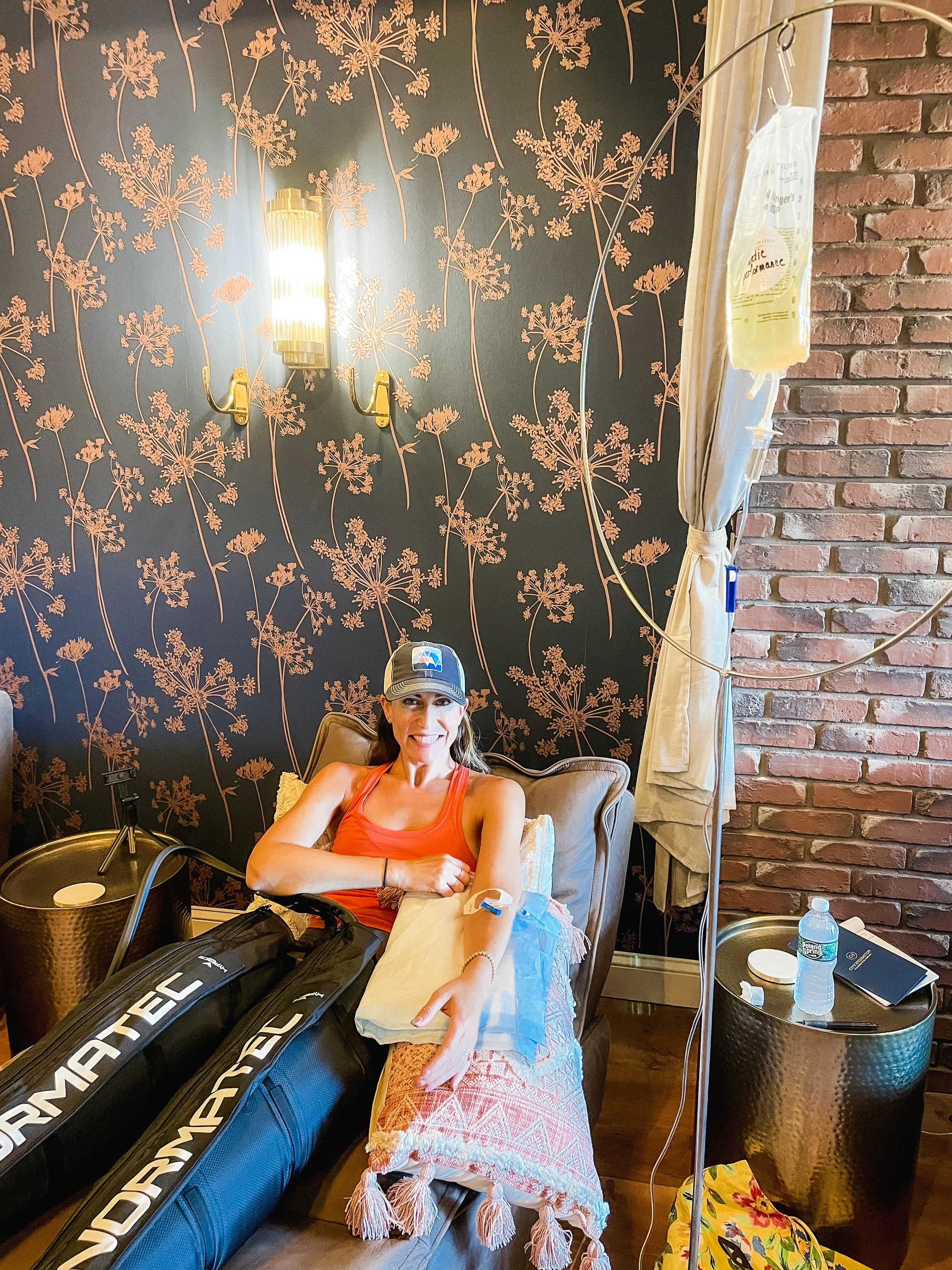 There is a medical conditions form and a waiver to complete before you get started and there are certain people that cannot just walk in and get an IV treatment without a doctor’s note (such as pregnant or nursing women, people above a certain age, and people with certain medical conditions). But the rest is simple. You get a liquid flush first and then you just sit there and relax while the 1 liter bag empties. I even got to add Normatec boots to my legs. I really love this recovery thing!