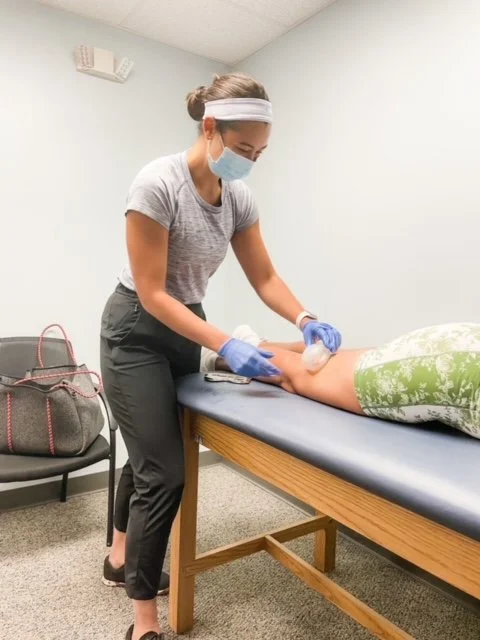 I visit my physical therapist once a week. We use that time to accomplish two goals. First, Dr. Nisha Meyer uses a variety of tools like Gua Sha, cups and the massage gun for soft tissue work at the start and conclusion of each session together. These tools increase blood flow and calm the nervous system. The increased blood flow speeds up the natural healing process by bringing more good blood cells to the area. Nisha always asks me my pain points from the previous week and gives special attention to those areas. We have worked on my feet, hips and knees since I have been going to her.