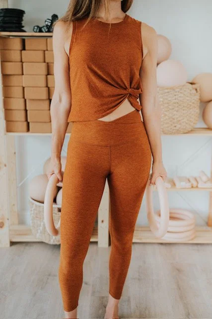 Why do I love these leggings so much? I have 6 reasons. Number one- the level of softness is insane. Number two- the fit hugs your body without being uncomfortable. Number three- the rise is just right plus the cross in the front adds some interest. And number four through six- comfort, comfort, comfort. These leggings are just perfect for Pilates, yoga, even some strength training.