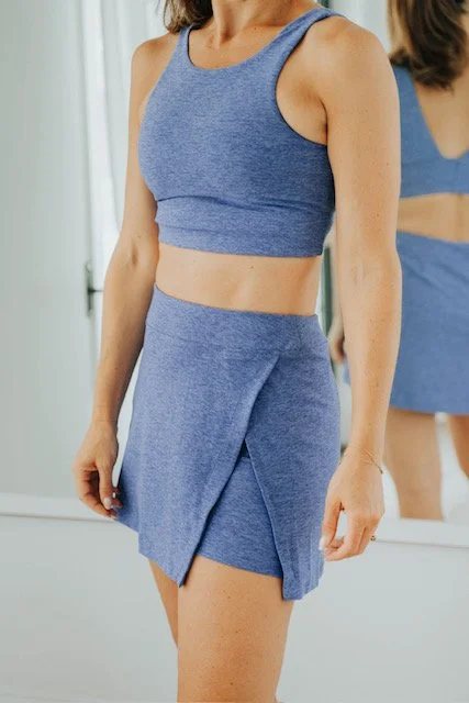 Outdoor Voices did feminine sporty chic yet again. This skirt is a great, longer length and the high side slit is fun. The crop top is also a longer length (it may even be more like a full length top on some girls) and the low cut V in the back is stunning.