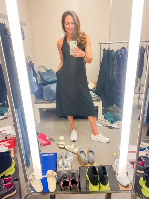 Let’s take the LBD and make it sporty. And then I’ll wear it! Each one of these picks has an updated and modern silhouette; is something different than what you already own; and makes a great everyday look even though the dresses are made of performance fabrics.