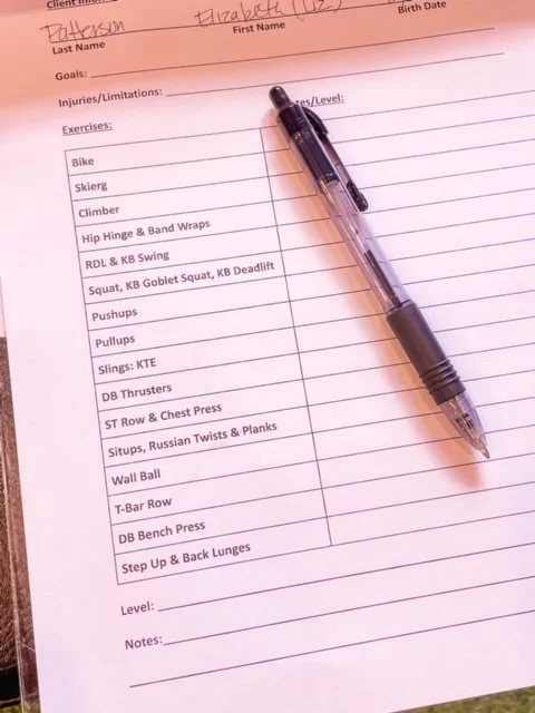 Liz describes herself as an “on-and-off exerciser.” Lately, back to back injuries have derailed whatever she had been doing at the time. Children have also gotten in the way of Liz being able to maintain a regular workout routine. Liz’s short term goals are to work through the residual effects of her injuries and get her strength back. Long term, Liz wants a routine and to make exercise a regular part of her life. She also wants to be more resilient, as her recent injuries have left her scarred in more ways than one.