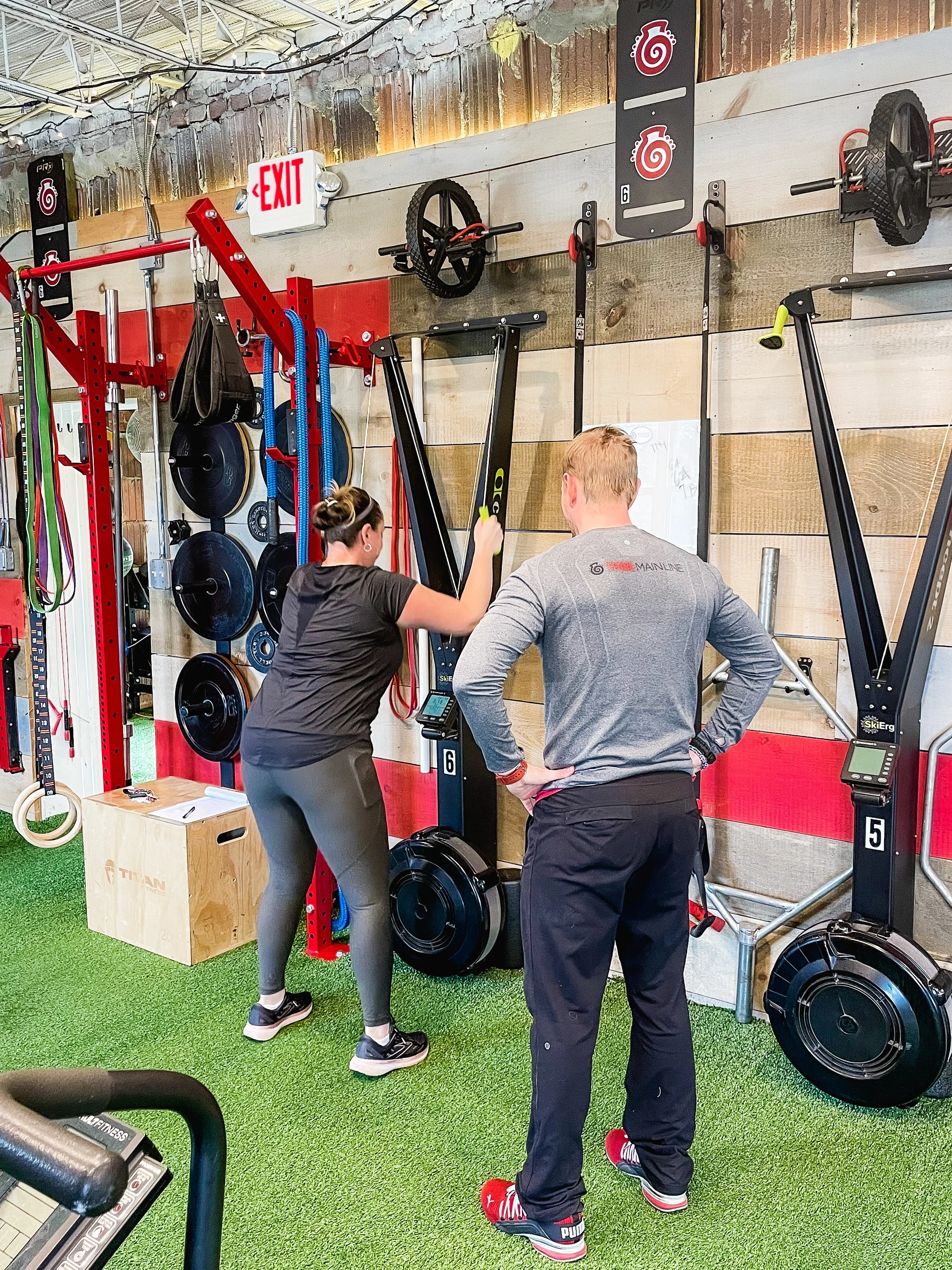 I happen to know for a fact that Liz has been back to Tribe several times since our first session. While some Tribe first-timers would be ready to start with the group class following the onboarding session, Bill recommended that Liz start with a few one-on-one coaching sessions before she enters the 30-minute group workout. And Liz was definitely more comfortable going that route. Liz is already setting goals for herself at Tribe. She plans to go for the assisted pull up next time!