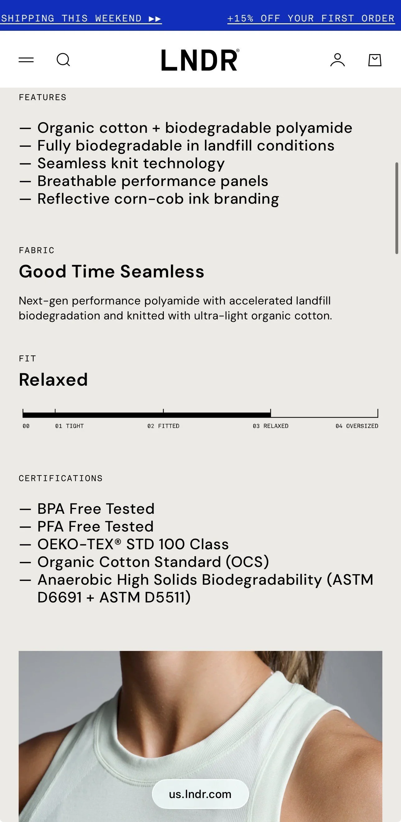 Still, LNDR’s commitment to safer materials is very much there. LNDR uses OEKO-TEX® certified fabrics, meaning their textiles are tested against a list of over 1,000 harmful substances. Pieces that meet this standard are labeled OEKO-TEX Standard 100, which certifies that they are safe for human health. Currently, over 100 of LNDR’s garments meet this certification, though not every item in their lineup comes with it.