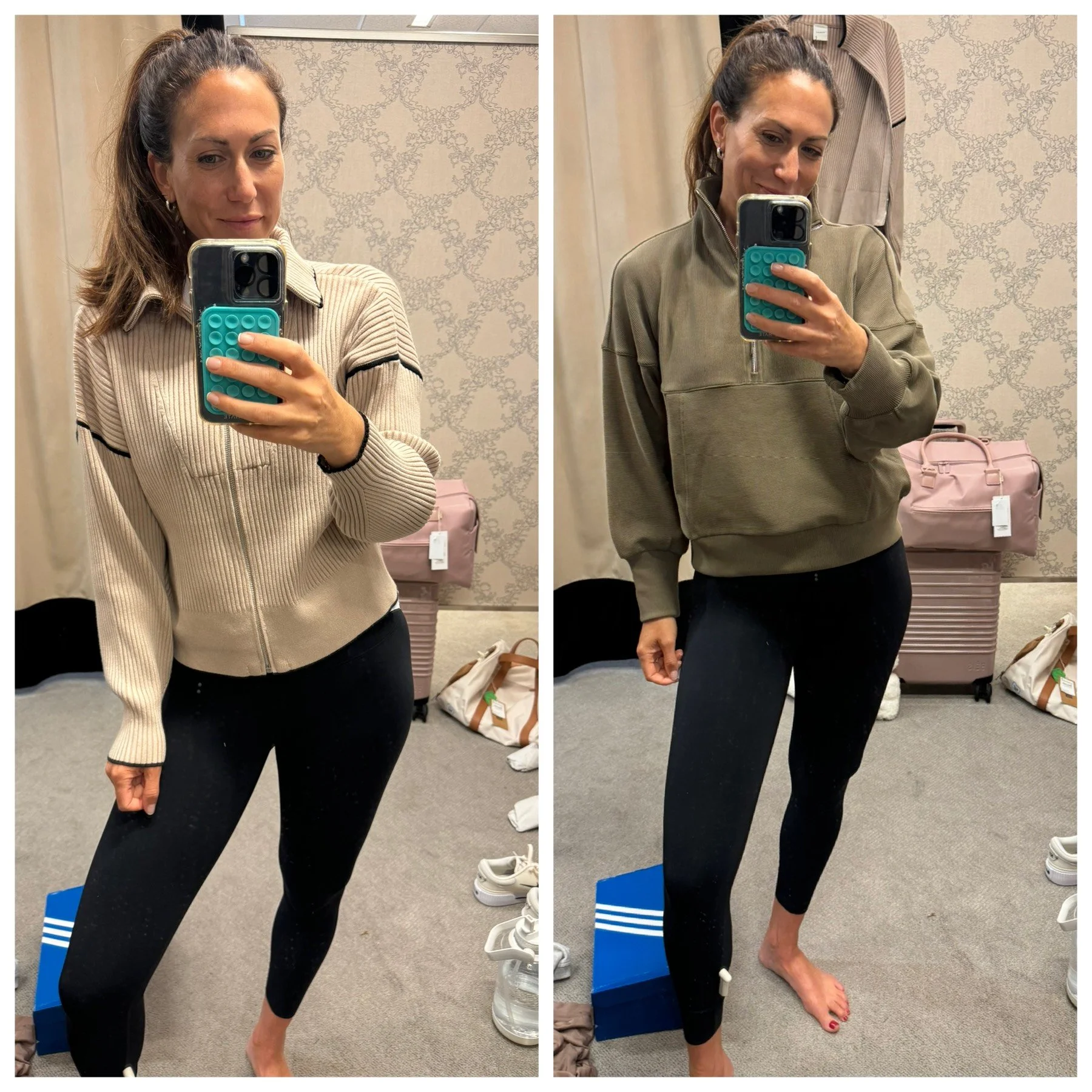 New to the sale for the ladies this year is Travis Mathews. I was excited to see how one of my husband’s favorite golf brand’s activewear held up. And while I loved the design details and the color of this set, I have to say that I was less than impressed by the fit and the fact that these leggings did absolutely nothing for the booty.
