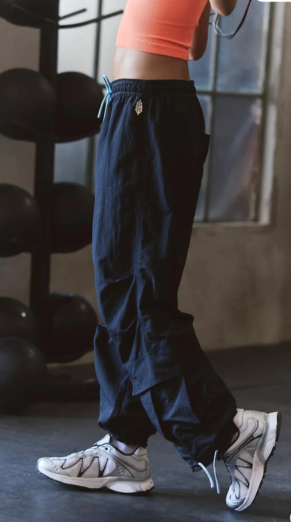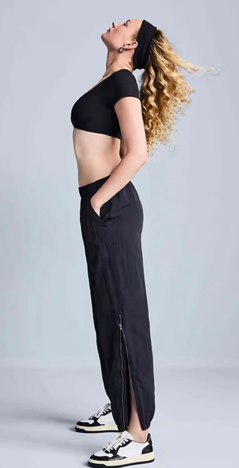 I’ve named this style pant from the sound the nylon fabrication makes when you move. You know what I am talking about— that swish and swoosh as you run, jump and lunge in them. These pants are largely worn for activities like yoga, Pilates or lifting weights, or as layering pieces when traveling to and from the studio. But they are also a great pant for a daytime casual look.