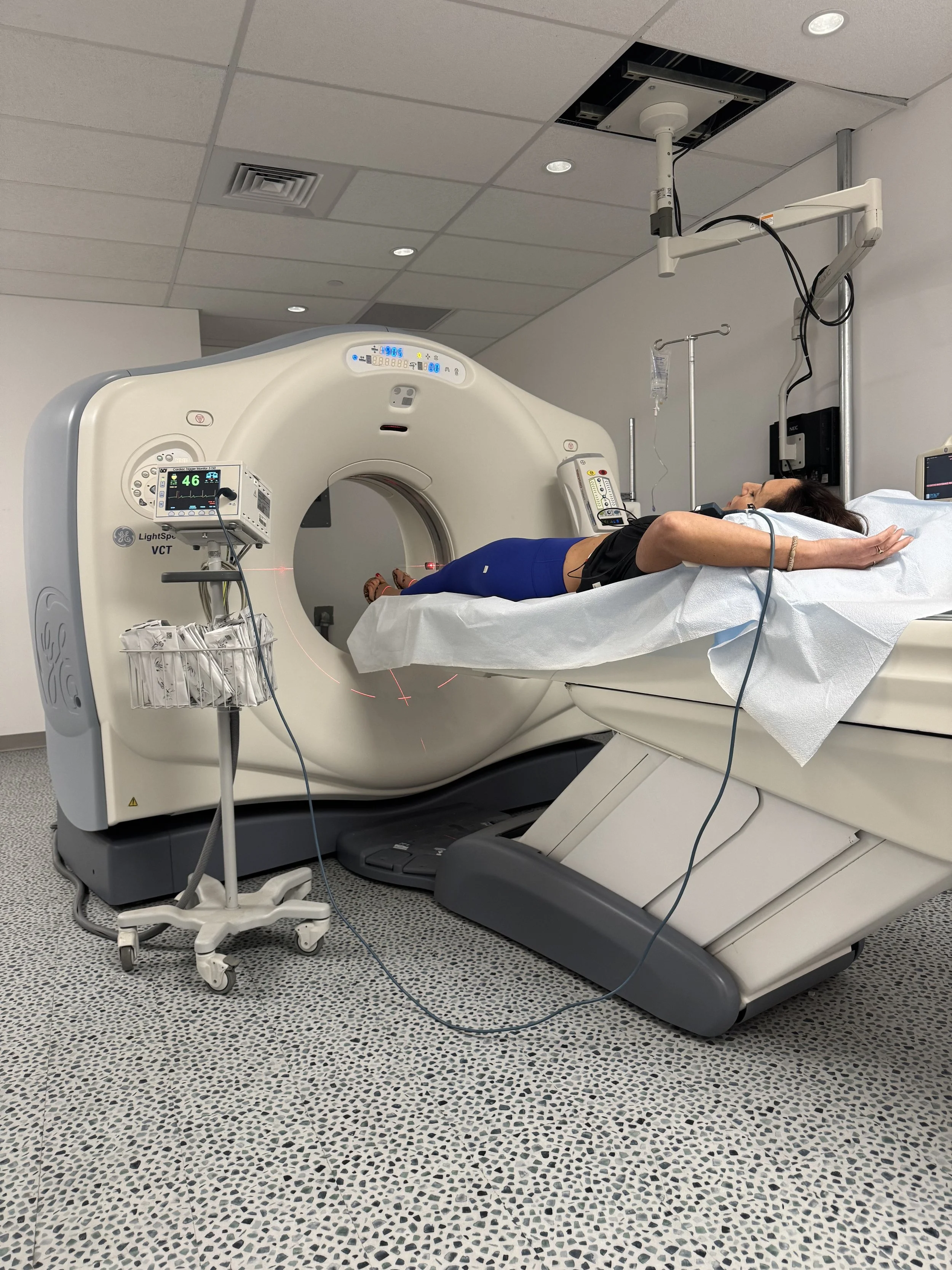 After a full assessment from one of the knowledgeable nurses, I was handed over to the CT techs who helped prepare me for the scan. If you’ve ever had a CT scan before, you know that it can be a little intimidating to roll into this massive machine, but unlike an MRI, you are not fully enclosed which was reassuring. The HeartFlow rep and a physician were also present in the imaging room during the entire test.