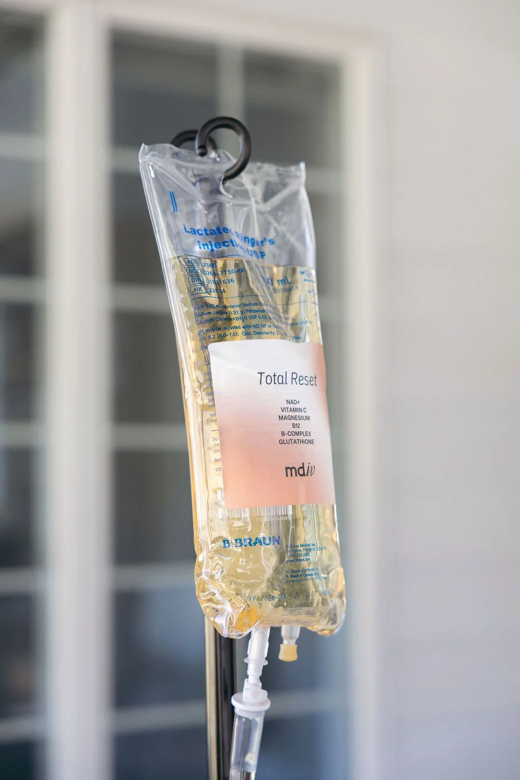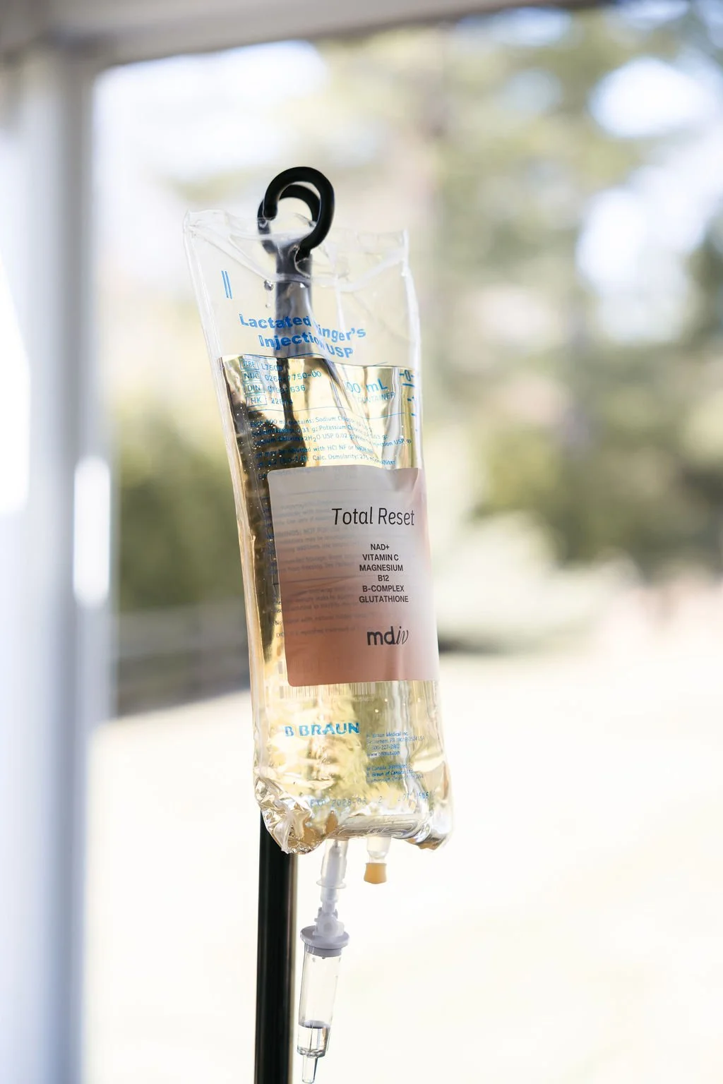 Total Reset: This is the Cadillac of all IV treatments, and lucky for me, it’s what I got when Dr. Jenn visited me a few weeks ago. Designed for “cellular renewal” this bag includes NAD+, Vitamin C (immunity; brain and heart health), Magnesium (energy and muscle function), B12 (brain health and mood regulation), B-Complex (energy production, brain function and cellular health) and Glutathione (detoxification, cellular repair and immune support) plus the more high-end fluid of Lactated Ringer’s. While it costs the most of any offerings at MD IV, this treatment lasts the longest with noticeable benefits apparent for up to two weeks! And this treatment provides real long term effects when received consistently over time.