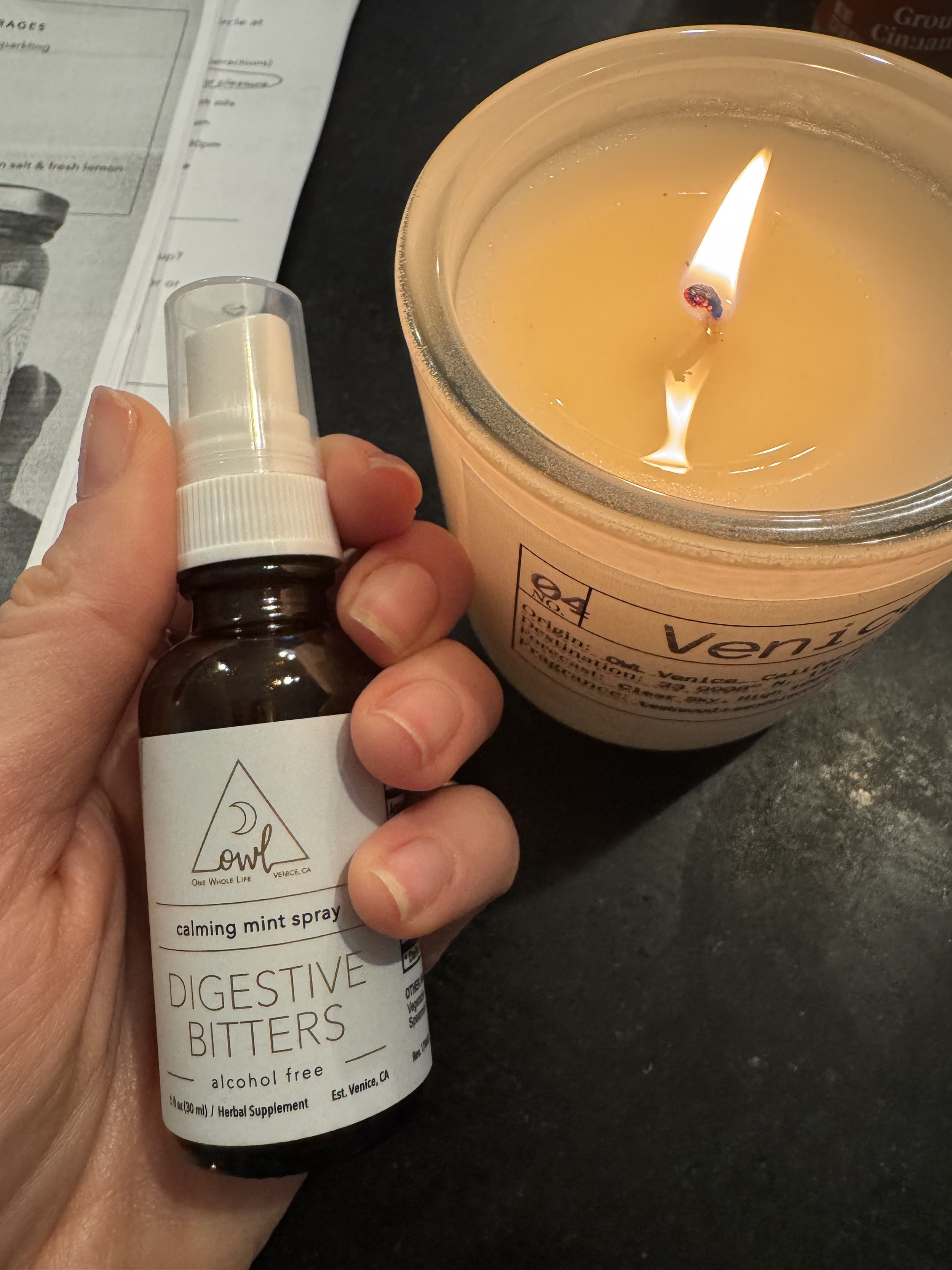 Digestive Bitters. This is my new obsession. I am loving the results from the 21 days mostly because my gut discomfort and bloat are gone. And I’m gonna chalk that up partially to the digestive bitters I spray into my mouth before every meal. If there is one thing you buy from Owl Venice, it should be this.