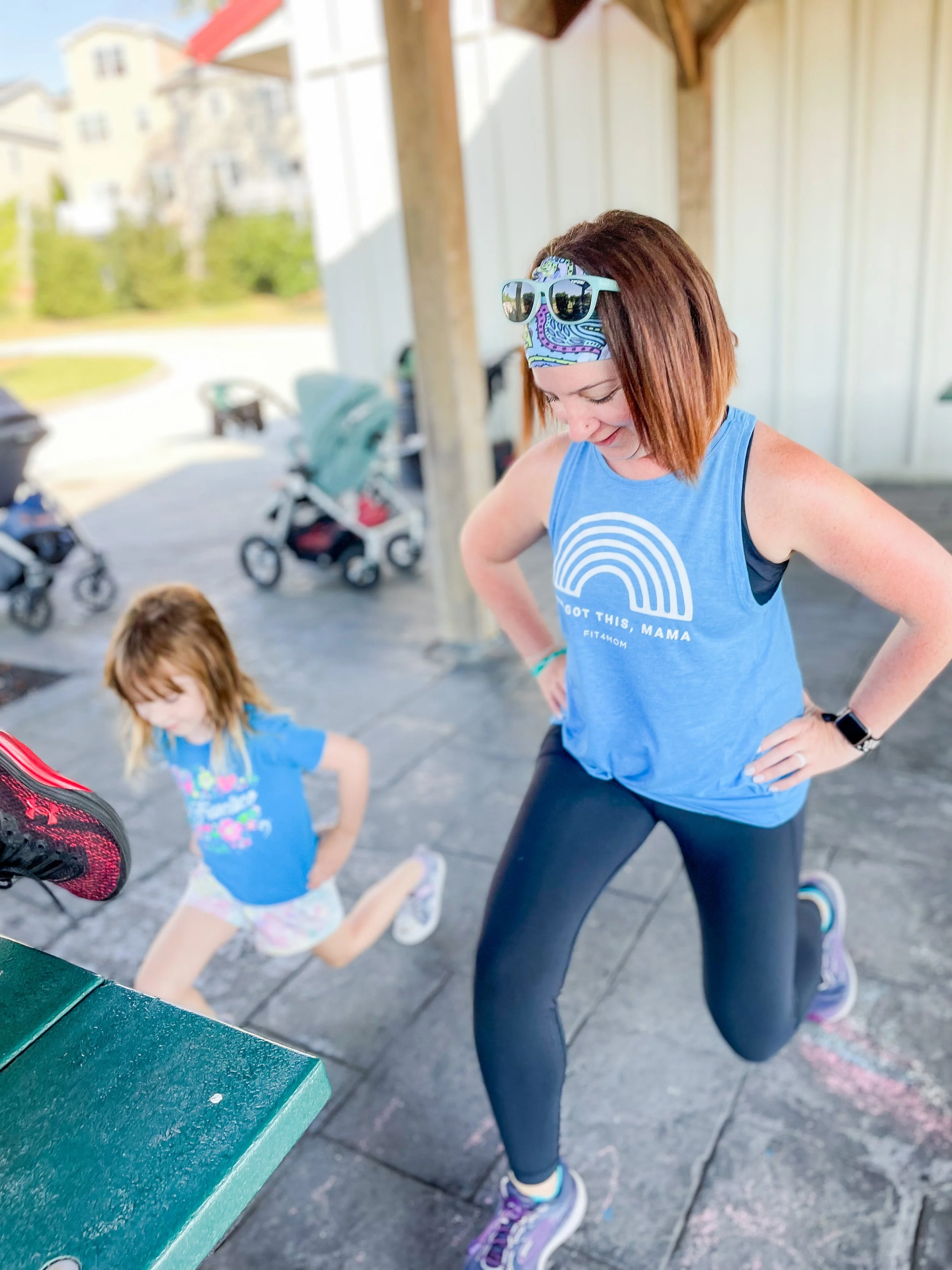 Anna is one of the sweetest, most supportive women I have come across. Originally from England (where she was a sports TV producer and reporter for major soccer and rugby teams) and then Texas, Anna moved to the area (West Chester) in 2016. At that time, Anna had her second child (who is now 6 and seen above, lunging with mum) and was experiencing the lack of postpartum care in the fitness industry. So Anna set out to change that. She became a certified personal trainer through the National Academy of Sports Medicine. And in 2021, Anna purchased a brand new Fit4Mom franchise and began building the community here.
